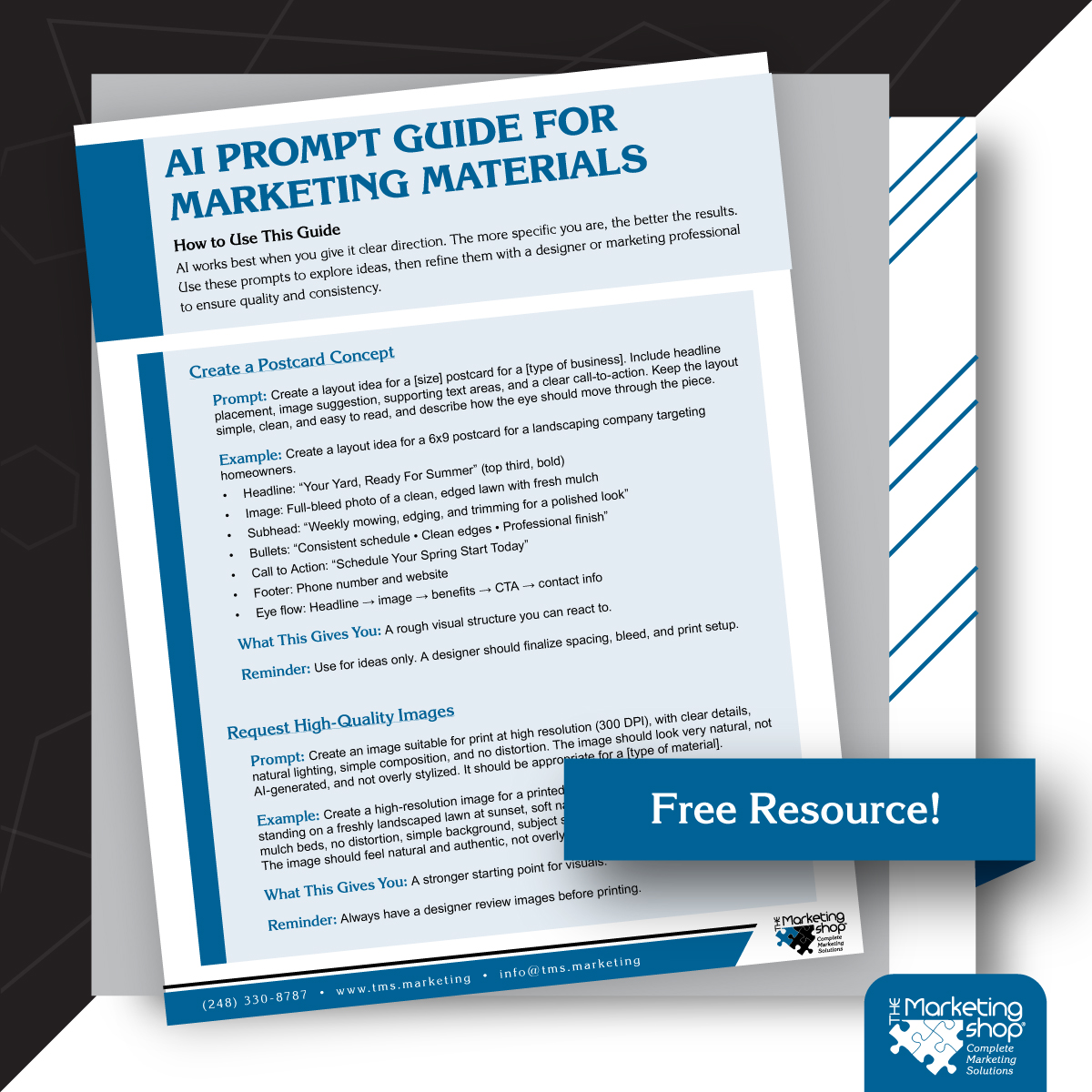 Smart, practical, and ready-to-use prompts to help you use AI as a tool in your marketing. From social posts to print pieces, this guide shows you what to ask for, along with real examples, tips, and a few cautions to help you avoid common pitfalls. It is designed to help you get better results from AI while keeping your work polished, accurate, and professional.